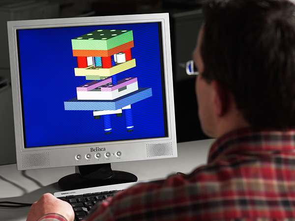 Die Konstruktion prozessfähiger Werkzeuge stellt höchste Anforderungen dar. Um diesen gerecht zu werden, stehen den erfahrenen Konstrukteuren modernste 3D-CAD- und Berechnungsprogramme zur Verfügung, mit denen die Produktion der Teile simuliert wird und mögliche Fehler auch bei komplexen Werkzeugen frühzeitig erkannt und vermieden werden.